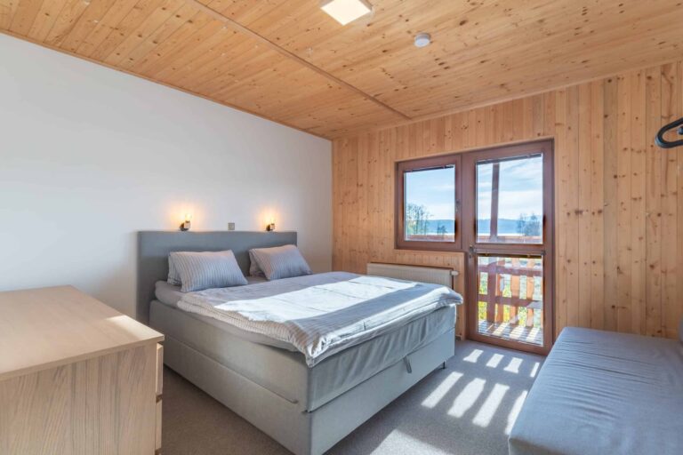 Každý pokoj má vlastní koupelnu, úložný prostor a posezení. Vybrané pokoje mají balkon nebo výhled na jezero.