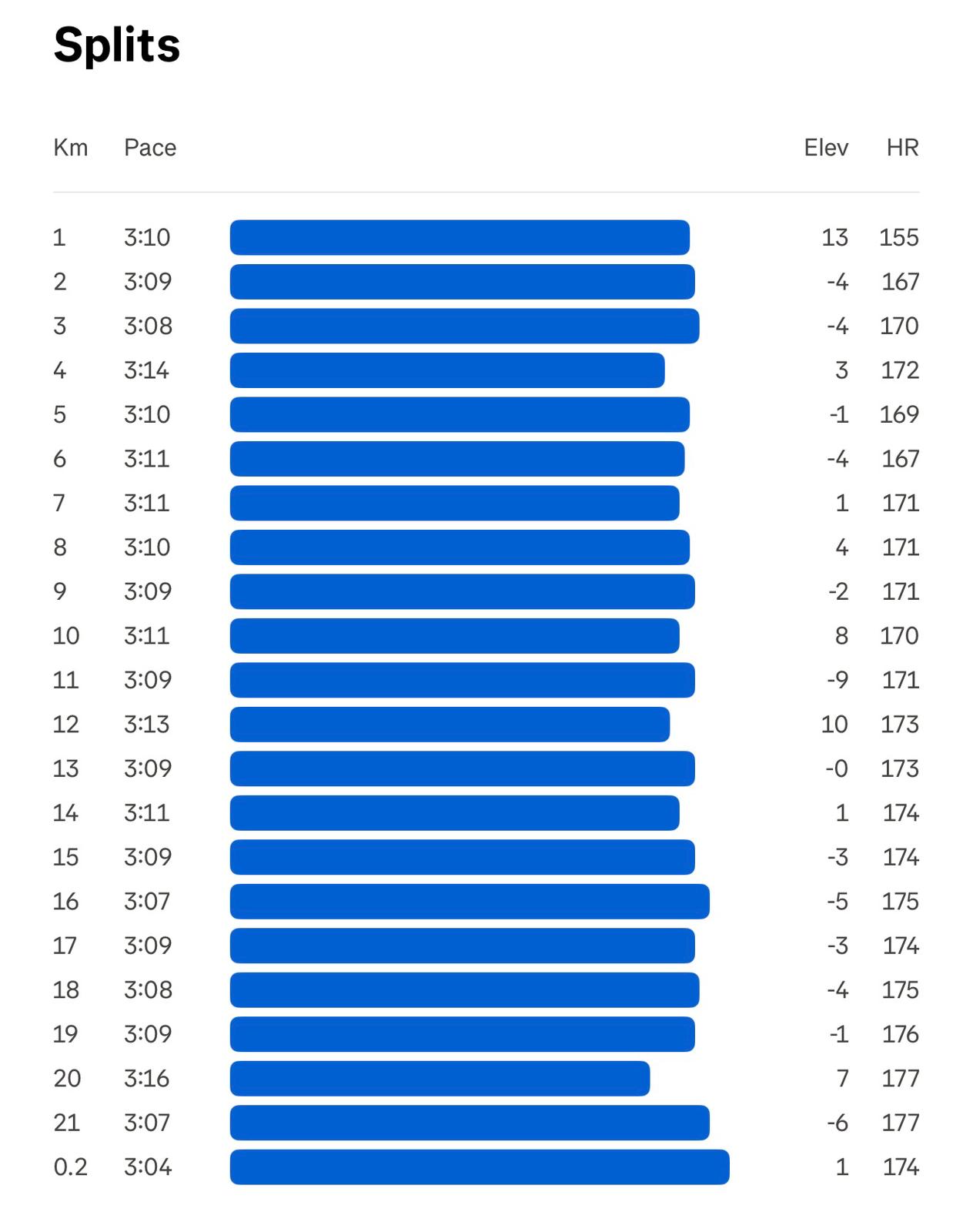 Držel jsem tempo kolem 3:11–3:12/km a hlavně si hlídal hlavu: