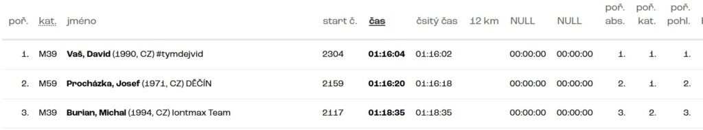 Náskok držím až do cíle a závod vyhrávám s časem 01:16:04 a s náskokem 16 vteřin 🥇🔥