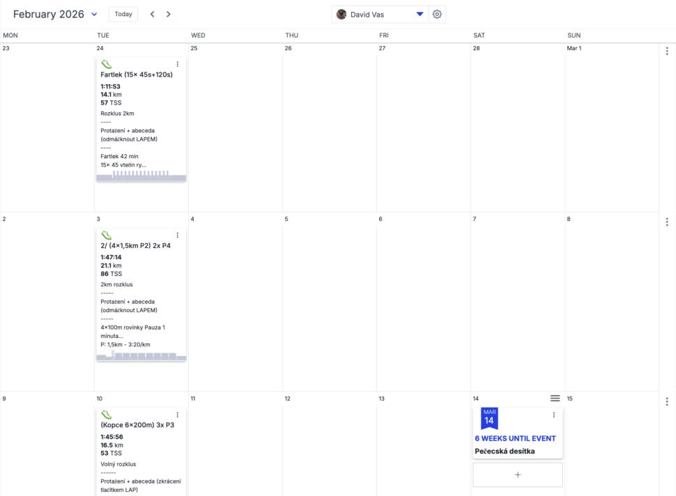 Tak právě pro vás je tu "Trénink do hodinek". Je to velmi jednoduché. V aplikaci Trainingpeaks vytvoříme účet (pro vás je zcela zdarma), následně propojíme vaše hodinky s aplikací. Se vším vám pomůžu, domluvíme vaše běžecké zóny a každou neděli vám budu posílat trénink na úterní den. Je pak na vás kdy si trénink odběháte, v aplikaci si ho můžete kamkoliv v týdnu posunout.